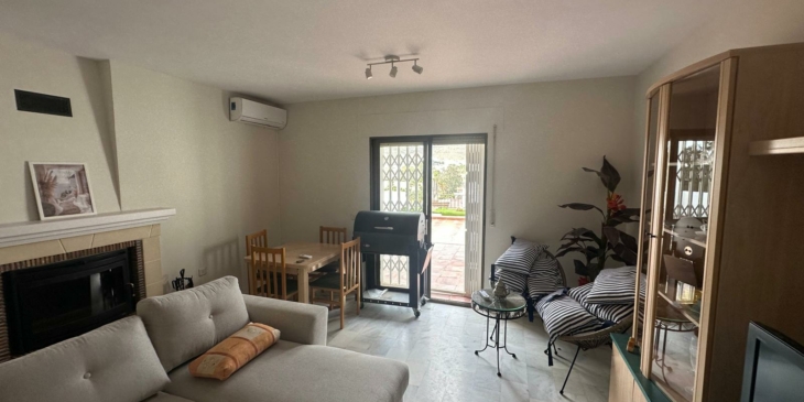 • Zona de día: Un salón luminoso y acogedor con chimenea, sofás confortables, TV y comedor, conectado directamente con la terraza para una vida interior-exterior fluida.